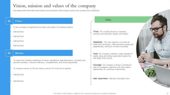 This slide provides information about mission, vision and values of the company such as care, courage, trust, simplicity etc. Presenting this PowerPoint presentation, titled Vision Mission And Values Of The Company Startup Investment Sources Pictures Pdf, with topics curated by our researchers after extensive research. This editable presentation is available for immediate download and provides attractive features when used. Download now and captivate your audience. Presenting this Vision Mission And Values Of The Company Startup Investment Sources Pictures Pdf. Our researchers have carefully researched and created these slides with all aspects taken into consideration. This is a completely customizable Vision Mission And Values Of The Company Startup Investment Sources Pictures Pdf that is available for immediate downloading. Download now and make an impact on your audience. Highlight the attractive features available with our PPTs. This slide provides information about mission, vision and values of the company such as care, courage, trust, simplicity etc.