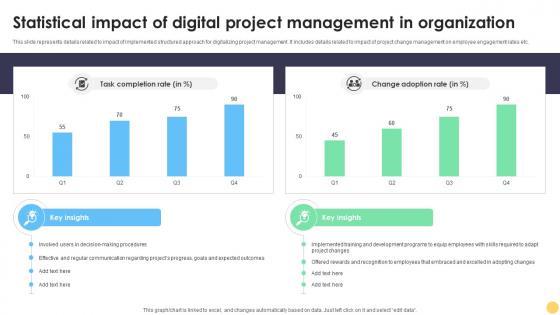 This slide represents details related to impact of implemented structured approach for digitalizing project management. It includes details related to impact of project change management on employee engagement rates etc. Do you have to make sure that everyone on your team knows about any specific topic I yes, then you should give The Digital Project Managers Statistical Impact Of Digital Project Management In Organization a try. Our experts have put a lot of knowledge and effort into creating this impeccable The Digital Project Managers Statistical Impact Of Digital Project Management In Organization. You can use this template for your upcoming presentations, as the slides are perfect to represent even the tiniest detail. You can download these templates from the Slidegeeks website and these are easy to edit. So grab these today This slide represents details related to impact of implemented structured approach for digitalizing project management. It includes details related to impact of project change management on employee engagement rates etc.