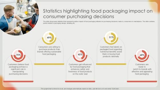 The slide showcases statistics that represent positive impact of food packaging initiated on purchasing decisions made by consumers in marketplace. The slide contains points related to packaging design, labelling etc.Take your projects to the next level with our ultimate collection of Statistics Highlighting Food Packaging Effective Strategies For Strengthening Food Ppt Slide. Slidegeeks has designed a range of layouts that are perfect for representing task or activity duration, keeping track of all your deadlines at a glance. Tailor these designs to your exact needs and give them a truly corporate look with your own brand colors they will make your projects stand out from the rest The slide showcases statistics that represent positive impact of food packaging initiated on purchasing decisions made by consumers in marketplace. The slide contains points related to packaging design, labelling etc.