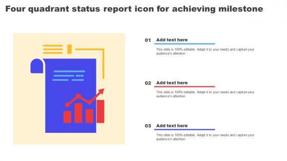 Showcasing this set of slides titled Four Quadrant Status Report Icon For Achieving Milestone Download pdf. The topics addressed in these templates are Four Quadrant Status, Report Icon, Achieving Milestone. All the content presented in this PPT design is completely editable. Download it and make adjustments in color, background, font etc. as per your unique business setting. Our Four Quadrant Status Report Icon For Achieving Milestone Download pdf are topically designed to provide an attractive backdrop to any subject. Use them to look like a presentation pro.