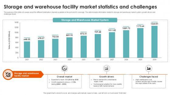 The purpose of this slide is to aware about the different distribution channels available in the port and its coverage. The slide includes information related to storage and warehouse market system, growth drivers and challenges faced.Slidegeeks is one of the best resources for PowerPoint templates. You can download easily and regulate Storage And Warehouse Facility Port Terminal Industry Ppt Sample for your personal presentations from our wonderful collection. A few clicks is all it takes to discover and get the most relevant and appropriate templates. Use our Templates to add a unique zing and appeal to your presentation and meetings. All the slides are easy to edit and you can use them even for advertisement purposes. The purpose of this slide is to aware about the different distribution channels available in the port and its coverage. The slide includes information related to storage and warehouse market system, growth drivers and challenges faced.