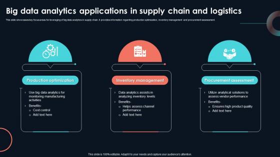 This slide showcases key focus areas for leveraging of big data analytics in supply chain. It provides information regarding production optimization, inventory management and procurement assessment. Find highly impressive Big Data Analytics Applications In Supply Developing Strategic Insights Using Big Data Analytics SS V on Slidegeeks to deliver a meaningful presentation. You can save an ample amount of time using these presentation templates. No need to worry to prepare everything from scratch because Slidegeeks experts have already done a huge research and work for you. You need to download Big Data Analytics Applications In Supply Developing Strategic Insights Using Big Data Analytics SS V for your upcoming presentation. All the presentation templates are 100 percent editable and you can change the color and personalize the content accordingly. Download now This slide showcases key focus areas for leveraging of big data analytics in supply chain. It provides information regarding production optimization, inventory management and procurement assessment.