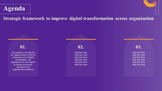 Create an editable Agenda Strategic Framework To Improve Digital Transformation Across Organization Ideas Pdf that communicates your idea and engages your audience. Whether you are presenting a business or an educational presentation, pre designed presentation templates help save time. Agenda Strategic Framework To Improve Digital Transformation Across Organization Ideas Pdf is highly customizable and very easy to edit, covering many different styles from creative to business presentations. Slidegeeks has creative team members who have crafted amazing templates. So, go and get them without any delay. Our Agenda Strategic Framework To Improve Digital Transformation Across Organization Ideas Pdf are topically designed to provide an attractive backdrop to any subject. Use them to look like a presentation pro.