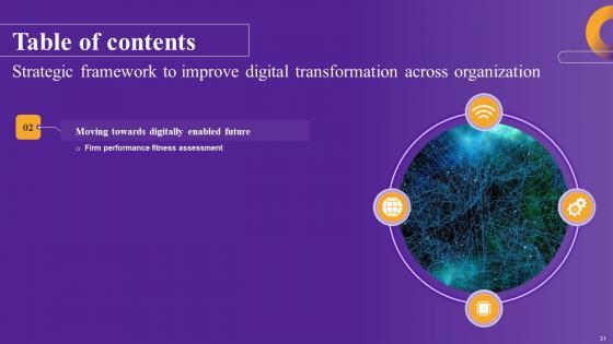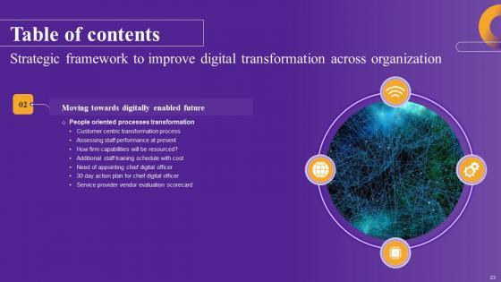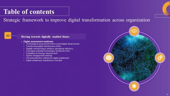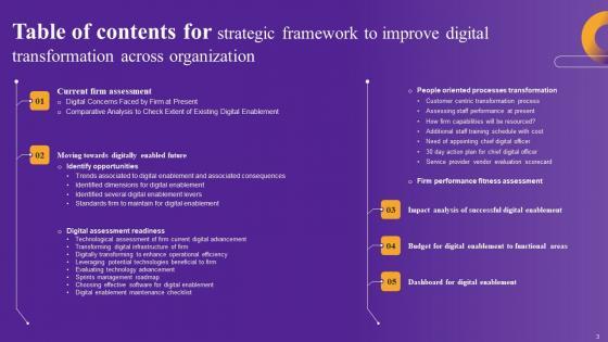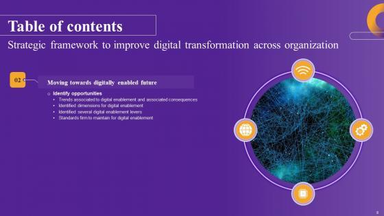 Welcome to our selection of the Strategic Framework To Improve Digital Transformation Across Table Of Contents Template Pdf. These are designed to help you showcase your creativity and bring your sphere to life. Planning and Innovation are essential for any business that is just starting out. This collection contains the designs that you need for your everyday presentations. All of our PowerPoints are 100 percent editable, so you can customize them to suit your needs. This multi purpose template can be used in various situations. Grab these presentation templates today Our Strategic Framework To Improve Digital Transformation Across Table Of Contents Template Pdf are topically designed to provide an attractive backdrop to any subject. Use them to look like a presentation pro.
