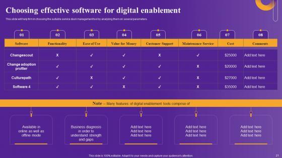 This slide will help firm in choosing the suitable service desk management tool by analyzing them on several parameters. There are so many reasons you need a Choosing Effective Software Strategic Framework To Improve Digital Transformation Icons Pdf. The first reason is you can not spend time making everything from scratch, Thus, Slidegeeks has made presentation templates for you too. You can easily download these templates from our website easily. This slide will help firm in choosing the suitable service desk management tool by analyzing them on several parameters.