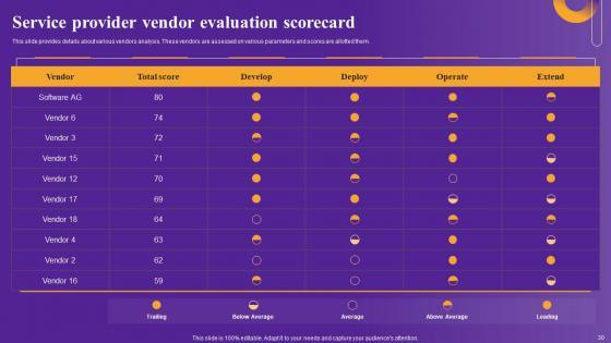 This slide provides details about various vendors analysis. These vendors are assessed on various parameters and scores are allotted them. Coming up with a presentation necessitates that the majority of the effort goes into the content and the message you intend to convey. The visuals of a PowerPoint presentation can only be effective if it supplements and supports the story that is being told. Keeping this in mind our experts created Service Provider Vendor Strategic Framework To Improve Digital Transformation Infographics Pdf to reduce the time that goes into designing the presentation. This way, you can concentrate on the message while our designers take care of providing you with the right template for the situation. This slide provides details about various vendors analysis. These vendors are assessed on various parameters and scores are allotted them.