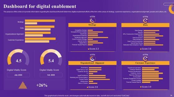 The purpose of this slide is to provide information regarding the dashboard that will determine digital enablement efforts of the firm in the areas of strategy, customer experience, organizational alignment, people and culture, etc. From laying roadmaps to briefing everything in detail, our templates are perfect for you. You can set the stage with your presentation slides. All you have to do is download these easy to edit and customizable templates. Dashboard For Digital Strategic Framework To Improve Digital Transformation Slides Pdf will help you deliver an outstanding performance that everyone would remember and praise you for. Do download this presentation today. The purpose of this slide is to provide information regarding the dashboard that will determine digital enablement efforts of the firm in the areas of strategy, customer experience, organizational alignment, people and culture, etc.
