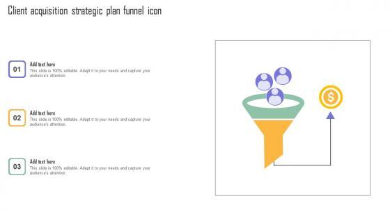 Showcasing this set of slides titled Client Acquisition Strategic Plan Funnel Icon Professional Pdf. The topics addressed in these templates are Client Acquisition, Strategic Plan Funnel. All the content presented in this PPT design is completely editable. Download it and make adjustments in color, background, font etc. as per your unique business setting. Our Client Acquisition Strategic Plan Funnel Icon Professional Pdf are topically designed to provide an attractive backdrop to any subject. Use them to look like a presentation pro.