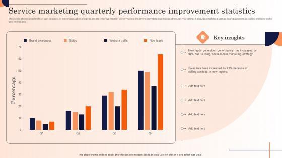 This slide shows graph which can be used by the organizations to present the improvement in performance of service providing businesses through marketing. It includes metrics such as brand awareness, sales, website traffic and new leads.Take your projects to the next level with our ultimate collection of Service Marketing Quarterly Performance Strategic Marketing Campaign Demonstration Pdf. Slidegeeks has designed a range of layouts that are perfect for representing task or activity duration, keeping track of all your deadlines at a glance. Tailor these designs to your exact needs and give them a truly corporate look with your own brand colors they all make your projects stand out from the rest. This slide shows graph which can be used by the organizations to present the improvement in performance of service providing businesses through marketing. It includes metrics such as brand awareness, sales, website traffic and new leads.