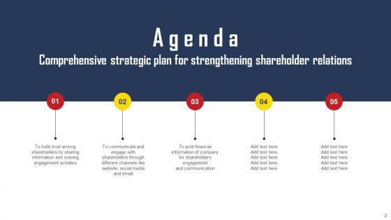 Do you know about Slidesgeeks Agenda Comprehensive Strategic Plan For Strengthening Shareholder Relations Designs Pdf These are perfect for delivering any kind od presentation. Using it, create PowerPoint presentations that communicate your ideas and engage audiences. Save time and effort by using our pre-designed presentation templates that are perfect for a wide range of topic. Our vast selection of designs covers a range of styles, from creative to business, and are all highly customizable and easy to edit. Download as a PowerPoint template or use them as Google Slides themes. Our Agenda Comprehensive Strategic Plan For Strengthening Shareholder Relations Designs Pdf are topically designed to provide an attractive backdrop to any subject. Use them to look like a presentation pro.