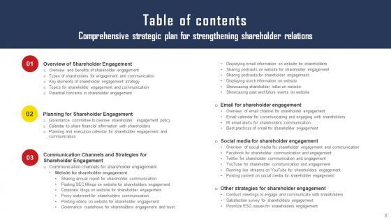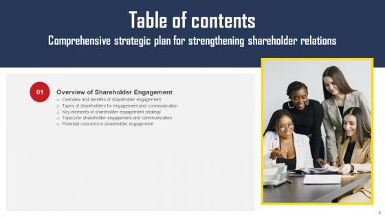 Presenting this PowerPoint presentation, titled Table Of Contents Comprehensive Strategic Plan For Strengthening Shareholder Relations Designs Pdf with topics curated by our researchers after extensive research. This editable presentation is available for immediate download and provides attractive features when used. Download now and captivate your audience. Presenting this Table Of Contents Comprehensive Strategic Plan For Strengthening Shareholder Relations Designs Pdf Our researchers have carefully researched and created these slides with all aspects taken into consideration. This is a completely customizable Table Of Contents Comprehensive Strategic Plan For Strengthening Shareholder Relations Designs Pdf that is available for immediate downloading. Download now and make an impact on your audience. Highlight the attractive features available with our PPTs. Our Table Of Contents Comprehensive Strategic Plan For Strengthening Shareholder Relations Designs Pdf are topically designed to provide an attractive backdrop to any subject. Use them to look like a presentation pro.
