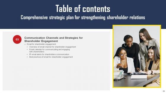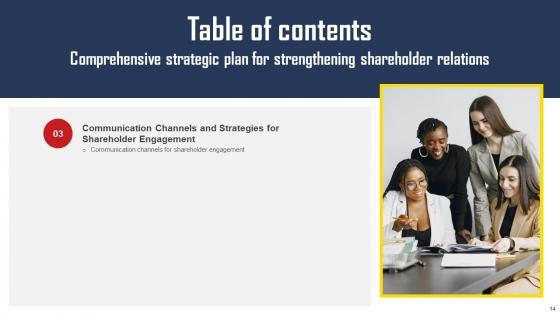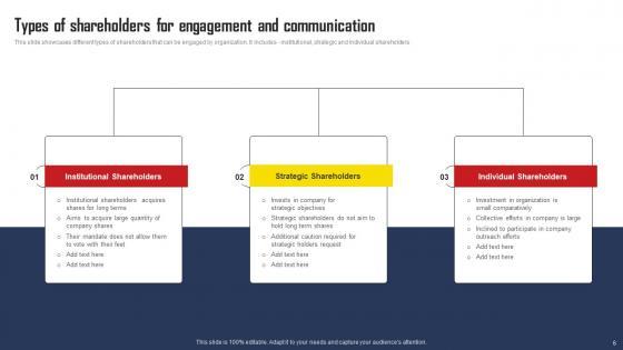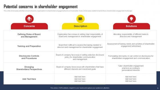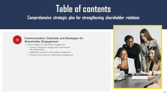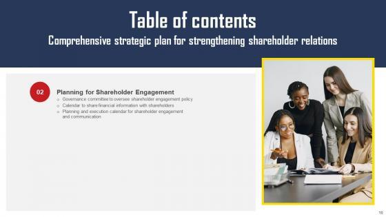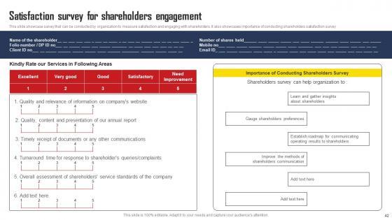 Using this ready-made PowerPoint slide, you can incorporate your own data to make an impact with your business innovation and clarity of goals. Use this brilliantly designed Comprehensive Strategic Plan For Strengthening Shareholder Relations Complete Deck With Slides to showcase how ultimately all business concepts are related. This presentation template can also be used to record resource allocation in a visual form. The fifty six-Slide Comprehensive Strategic Plan For Strengthening Shareholder Relations Complete Deck With Slides is suitable for all your business needs, where you need to make sure that all bases are covered. Download this PPT template now to start a journey on your chosen business, with customer satisfaction the key aim. Our Comprehensive Strategic Plan For Strengthening Shareholder Relations Complete Deck With Slides are topically designed to provide an attractive backdrop to any subject. Use them to look like a presentation pro.
