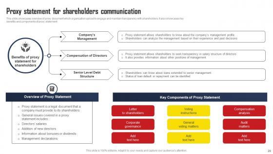 This slide showcases overview of proxy document which organization upload to engage and maintain transparency with shareholders. It also showcases key benefits and components of proxy statement. Welcome to our selection of the Proxy Statement For Shareholders Communication Comprehensive Strategic Plan Sample Pdf These are designed to help you showcase your creativity and bring your sphere to life. Planning and Innovation are essential for any business that is just starting out. This collection contains the designs that you need for your everyday presentations. All of our PowerPoints are 100 percent editable, so you can customize them to suit your needs. This multi-purpose template can be used in various situations. Grab these presentation templates today. This slide showcases overview of proxy document which organization upload to engage and maintain transparency with shareholders. It also showcases key benefits and components of proxy statement.