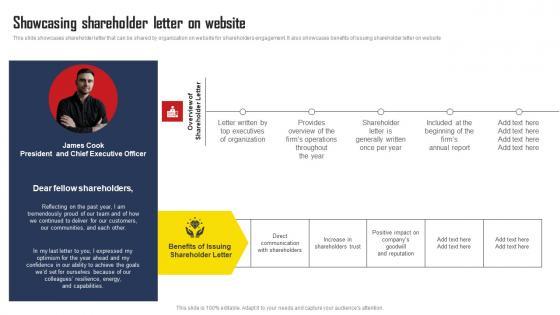 This slide showcases shareholder letter that can be shared by organization on website for shareholders engagement. It also showcases benefits of issuing shareholder letter on website. Slidegeeks has constructed Showcasing Shareholder Letter On Website Comprehensive Strategic Plan Brochure Pdf after conducting extensive research and examination. These presentation templates are constantly being generated and modified based on user preferences and critiques from editors. Here, you will find the most attractive templates for a range of purposes while taking into account ratings and remarks from users regarding the content. This is an excellent jumping-off point to explore our content and will give new users an insight into our top-notch PowerPoint Templates. This slide showcases shareholder letter that can be shared by organization on website for shareholders engagement. It also showcases benefits of issuing shareholder letter on website.