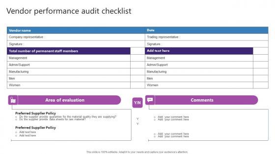 The Vendor Performance Audit Checklist Strategic Plan For Enhancing Rules Pdf is a compilation of the most recent design trends as a series of slides. It is suitable for any subject or industry presentation, containing attractive visuals and photo spots for businesses to clearly express their messages. This template contains a variety of slides for the user to input data, such as structures to contrast two elements, bullet points, and slides for written information. Slidegeeks is prepared to create an impression. Our Vendor Performance Audit Checklist Strategic Plan For Enhancing Rules Pdf are topically designed to provide an attractive backdrop to any subject. Use them to look like a presentation pro.