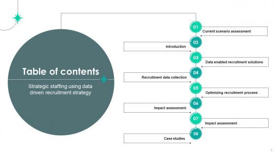 If your project calls for a presentation, then Slidegeeks is your go-to partner because we have professionally designed, easy-to-edit templates that are perfect for any presentation. After downloading, you can easily edit Table Of Contents Strategic Staffing Using Data Driven Recruitment Strategy CRP DK SS V and make the changes accordingly. You can rearrange slides or fill them with different images. Check out all the handy templates Our Table Of Contents Strategic Staffing Using Data Driven Recruitment Strategy CRP DK SS V are topically designed to provide an attractive backdrop to any subject. Use them to look like a presentation pro.