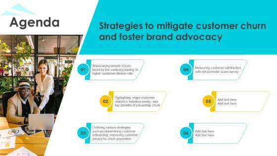 Create an editable Agenda Strategies To Mitigate Customer Churn And Foster Elements Pdf that communicates your idea and engages your audience. Whether you are presenting a business or an educational presentation, pre designed presentation templates help save time. Agenda Strategies To Mitigate Customer Churn And Foster Elements Pdf is highly customizable and very easy to edit, covering many different styles from creative to business presentations. Slidegeeks has creative team members who have crafted amazing templates. So, go and get them without any delay. Our Agenda Strategies To Mitigate Customer Churn And Foster Elements Pdf are topically designed to provide an attractive backdrop to any subject. Use them to look like a presentation pro.