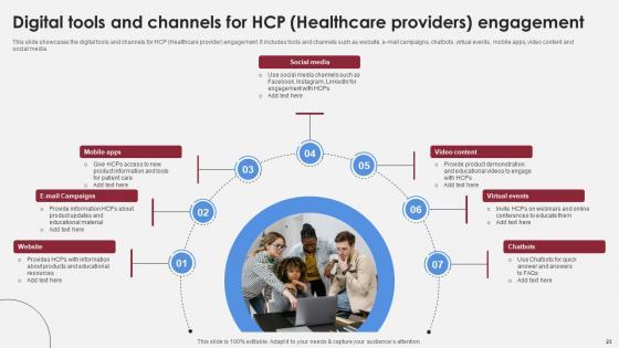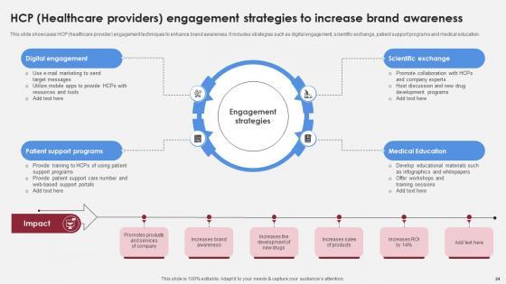 This slide showcases HCP healthcare provider engagement techniques to enhance brand awareness. It includes strategies such as digital engagement, scientific exchange, patient support programs and medical education. Crafting an eye-catching presentation has never been more straightforward. Let your presentation shine with this tasteful yet straightforward HCP Healthcare Providers Engagement Strategies Accelerating Market Share And Profitability MKT SS V template. It offers a minimalistic and classy look that is great for making a statement. The colors have been employed intelligently to add a bit of playfulness while still remaining professional. Construct the ideal HCP Healthcare Providers Engagement Strategies Accelerating Market Share And Profitability MKT SS V that effortlessly grabs the attention of your audience Begin now and be certain to wow your customers This slide showcases HCP healthcare provider engagement techniques to enhance brand awareness. It includes strategies such as digital engagement, scientific exchange, patient support programs and medical education.
