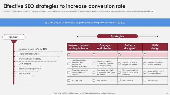 This slides showcases the effective SEO techniques to enhance lead conversion rate. It includes strategies such as keyword research and optimization, on-page optimization, enhance site speed and enhance use Slidegeeks is here to make your presentations a breeze with Effective SEO Strategies To Increase Accelerating Market Share And Profitability MKT SS V With our easy-to-use and customizable templates, you can focus on delivering your ideas rather than worrying about formatting. With a variety of designs to choose from, you are sure to find one that suits your needs. And with animations and unique photos, illustrations, and fonts, you can make your presentation pop. So whether you are giving a sales pitch or presenting to the board, make sure to check out Slidegeeks first This slides showcases the effective SEO techniques to enhance lead conversion rate. It includes strategies such as keyword research and optimization, on-page optimization, enhance site speed and enhance use