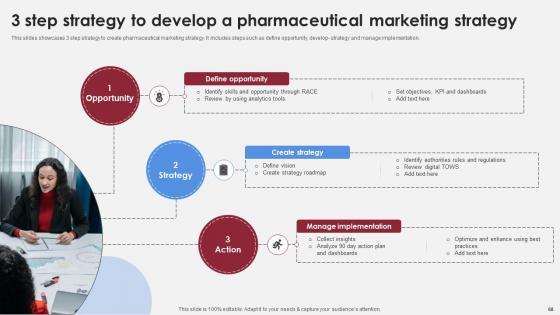 This slides showcases 3 step strategy to create pharmaceutical marketing strategy. It includes steps such as define opportunity, develop- strategy and manage implementation. Find a pre-designed and impeccable 3 Step Strategy To Develop A Pharmaceutical Accelerating Market Share And Profitability MKT SS V. The templates can ace your presentation without additional effort. You can download these easy-to-edit presentation templates to make your presentation stand out from others. So, what are you waiting for Download the template from Slidegeeks today and give a unique touch to your presentation. This slides showcases 3 step strategy to create pharmaceutical marketing strategy. It includes steps such as define opportunity, develop- strategy and manage implementation.