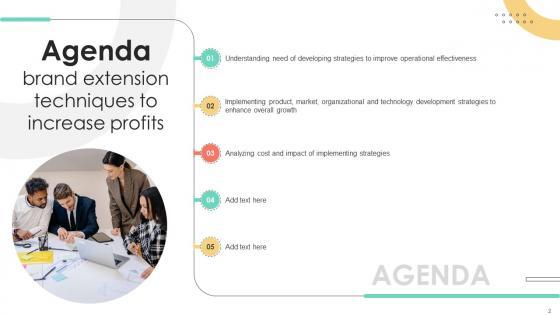 Create an editable Agenda Brand Extension Techniques To Increase Profits Strategy SS V that communicates your idea and engages your audience. Whether you are presenting a business or an educational presentation, pre-designed presentation templates help save time. Agenda Brand Extension Techniques To Increase Profits Strategy SS V is highly customizable and very easy to edit, covering many different styles from creative to business presentations. Slidegeeks has creative team members who have crafted amazing templates. So, go and get them without any delay. Our Agenda Brand Extension Techniques To Increase Profits Strategy SS V are topically designed to provide an attractive backdrop to any subject. Use them to look like a presentation pro.