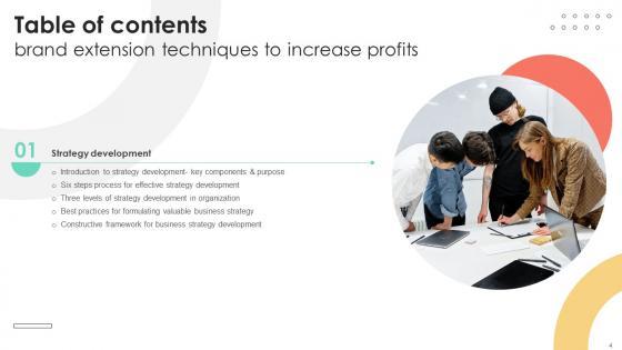 There are so many reasons you need a Table Of Contents Brand Extension Techniques To Increase Profits Strategy SS V. The first reason is you can not spend time making everything from scratch, Thus, Slidegeeks has made presentation templates for you too. You can easily download these templates from our website easily. Our Table Of Contents Brand Extension Techniques To Increase Profits Strategy SS V are topically designed to provide an attractive backdrop to any subject. Use them to look like a presentation pro.