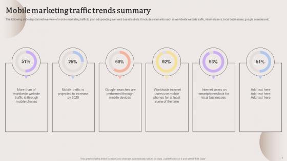 The following slide depicts brief overview of mobile marketing traffic to plan ad spending over web based outlets. It includes elements such as worldwide website traffic, internet users, local businesses, google searches etc. Crafting an eye-catching presentation has never been more straightforward. Let your presentation shine with this tasteful yet straightforward Mobile Marketing Traffic Trends Summary Evaluating Strengths And Weaknesses Download Pdf template. It offers a minimalistic and classy look that is great for making a statement. The colors have been employed intelligently to add a bit of playfulness while still remaining professional. Construct the ideal Mobile Marketing Traffic Trends Summary Evaluating Strengths And Weaknesses Download Pdf that effortlessly grabs the attention of your audience. Begin now and be certain to wow your customers. The following slide depicts brief overview of mobile marketing traffic to plan ad spending over web based outlets. It includes elements such as worldwide website traffic, internet users, local businesses, google searches etc.