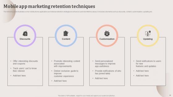 The following slide illustrates some mobile phone application promotional retention strategies to enhance customer lifetime values. It includes elements such as discounts, content, customization, updating etc.If your project calls for a presentation, then Slidegeeks is your go-to partner because we have professionally designed, easy-to-edit templates that are perfect for any presentation. After downloading, you can easily edit Mobile App Marketing Retention Techniques Evaluating Strengths And Weaknesses Summary Pdf and make the changes accordingly. You can rearrange slides or fill them with different images. Check out all the handy templates The following slide illustrates some mobile phone application promotional retention strategies to enhance customer lifetime values. It includes elements such as discounts, content, customization, updating etc.
