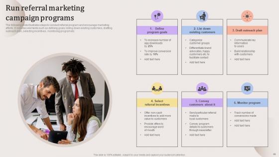 The following slide illustrates steps to conduct referral program and encourage marketing efforts. It includes elements such as defining goals, listing down existing customers, drafting outreach plan, selecting incentives, monitoring program etc.Retrieve professionally designed Run Referral Marketing Campaign Programs Evaluating Strengths And Weaknesses Topics Pdf to effectively convey your message and captivate your listeners. Save time by selecting pre-made slideshows that are appropriate for various topics, from business to educational purposes. These themes come in many different styles, from creative to corporate, and all of them are easily adjustable and can be edited quickly. Access them as PowerPoint templates or as Google Slides themes. You do not have to go on a hunt for the perfect presentation because Slidegeeks got you covered from everywhere. The following slide illustrates steps to conduct referral program and encourage marketing efforts. It includes elements such as defining goals, listing down existing customers, drafting outreach plan, selecting incentives, monitoring program etc.