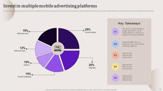 The following slide depicts various channels to invest in to promote mobile app launch and increase conversion rate. It includes elements such as social media, website, email marketing, search along with key takeaways etc.Create an editable Evaluating Strengths And Weaknesses Invest In Multiple Mobile Advertising Template Pdf that communicates your idea and engages your audience. Whether you are presenting a business or an educational presentation, pre-designed presentation templates help save time. Evaluating Strengths And Weaknesses Invest In Multiple Mobile Advertising Template Pdf is highly customizable and very easy to edit, covering many different styles from creative to business presentations. Slidegeeks has creative team members who have crafted amazing templates. So, go and get them without any delay. The following slide depicts various channels to invest in to promote mobile app launch and increase conversion rate. It includes elements such as social media, website, email marketing, search along with key takeaways etc.