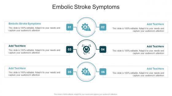 Introducing our well-designed Embolic Stroke Symptoms In Powerpoint And Google Slides Cpb. This PowerPoint design presents information on topics like Embolic Stroke Symptoms. As it is predesigned it helps boost your confidence level. It also makes you a better presenter because of its high-quality content and graphics. This PPT layout can be downloaded and used in different formats like PDF, PNG, and JPG. Not only this, it is available in both Standard Screen and Widescreen aspect ratios for your convenience. Therefore, click on the download button now to persuade and impress your audience. Our Embolic Stroke Symptoms In Powerpoint And Google Slides Cpb are topically designed to provide an attractive backdrop to any subject. Use them to look like a presentation pro.