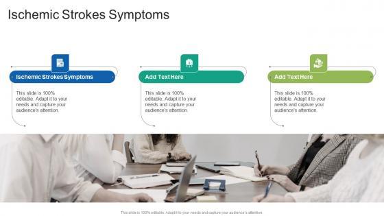 Presenting our innovatively designed set of slides titled Ischemic Strokes Symptoms In Powerpoint And Google Slides Cpb. This completely editable PowerPoint graphic exhibits Ischemic Strokes Symptoms that will help you convey the message impactfully. It can be accessed with Google Slides and is available in both standard screen and widescreen aspect ratios. Apart from this, you can download this well-structured PowerPoint template design in different formats like PDF, JPG, and PNG. So, click the download button now to gain full access to this PPT design. Our Ischemic Strokes Symptoms In Powerpoint And Google Slides Cpb are topically designed to provide an attractive backdrop to any subject. Use them to look like a presentation pro.