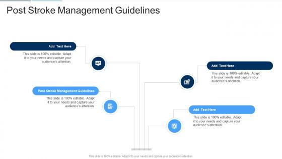Introducing our well designed Post Stroke Management Guidelines In Powerpoint And Google Slides Cpb. This PowerPoint design presents information on topics like Post Stroke Management Guidelines. As it is predesigned it helps boost your confidence level. It also makes you a better presenter because of its high quality content and graphics. This PPT layout can be downloaded and used in different formats like PDF, PNG, and JPG. Not only this, it is available in both Standard Screen and Widescreen aspect ratios for your convenience. Therefore, click on the download button now to persuade and impress your audience. Our Post Stroke Management Guidelines In Powerpoint And Google Slides Cpb are topically designed to provide an attractive backdrop to any subject. Use them to look like a presentation pro.