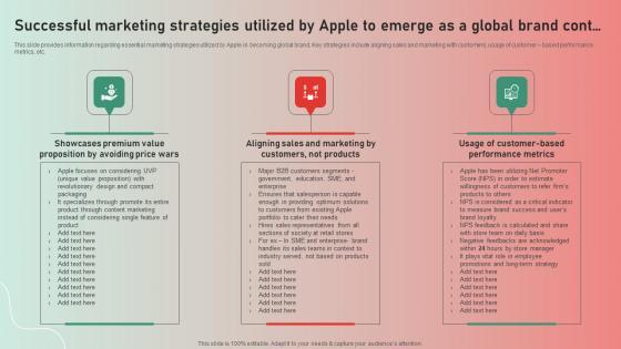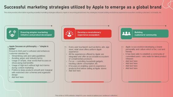 This slide provides information regarding essential marketing strategies utilized by Apple in becoming global brand. Key strategies include building revolutionary experience ecosystem, building customers community, etc. Create an editable Successful Marketing Strategies Utilized Apple Brand Story Journey Of Iconic Enterprise Brochure Pdf that communicates your idea and engages your audience. Whether you are presenting a business or an educational presentation, pre designed presentation templates help save time. Successful Marketing Strategies Utilized Apple Brand Story Journey Of Iconic Enterprise Brochure Pdf is highly customizable and very easy to edit, covering many different styles from creative to business presentations. Slidegeeks has creative team members who have crafted amazing templates. So, go and get them without any delay. This slide provides information regarding essential marketing strategies utilized by Apple in becoming global brand. Key strategies include building revolutionary experience ecosystem, building customers community, etc.