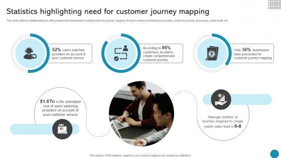 This slide outlines statistical figures citing reasons for businesses to adopt customer journey mapping. It covers reasons pertaining to providers, customer journey, processes, sales leads, etc. Make sure to capture your audiences attention in your business displays with our gratis customizable Statistics Highlighting Need For Customer Journey Driving Business Success Integrating Product. These are great for business strategies, office conferences, capital raising or task suggestions. If you desire to acquire more customers for your tech business and ensure they stay satisfied, create your own sales presentation with these plain slides. This slide outlines statistical figures citing reasons for businesses to adopt customer journey mapping. It covers reasons pertaining to providers, customer journey, processes, sales leads, etc.