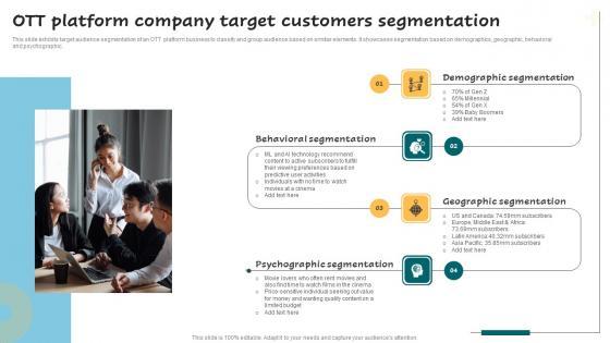 This slide exhibits target audience segmentation of an OTT platform business to classify and group audience based on similar elements. It showcases segmentation based on demographics, geographic, behavioral and psychographic. Get a simple yet stunning designed OTT Platform Company Target Customers Successful Guide For Market Segmentation Infographics Pdf. It is the best one to establish the tone in your meetings. It is an excellent way to make your presentations highly effective. So, download this PPT today from Slidegeeks and see the positive impacts. Our easy-to-edit OTT Platform Company Target Customers Successful Guide For Market Segmentation Infographics Pdf can be your go-to option for all upcoming conferences and meetings. So, what are you waiting for Grab this template today. This slide exhibits target audience segmentation of an OTT platform business to classify and group audience based on similar elements. It showcases segmentation based on demographics, geographic, behavioral and psychographic.