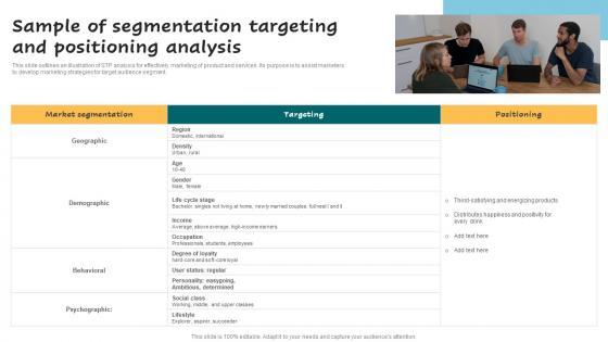 This slide outlines an illustration of STP analysis for effectively marketing of product and services. Its purpose is to assist marketers to develop marketing strategies for target audience segment. Find highly impressive Sample Of Segmentation Targeting Successful Guide For Market Segmentation Sample Pdf on Slidegeeks to deliver a meaningful presentation. You can save an ample amount of time using these presentation templates. No need to worry to prepare everything from scratch because Slidegeeks experts have already done a huge research and work for you. You need to download Sample Of Segmentation Targeting Successful Guide For Market Segmentation Sample Pdf for your upcoming presentation. All the presentation templates are 100 percent editable and you can change the color and personalize the content accordingly. Download now. This slide outlines an illustration of STP analysis for effectively marketing of product and services. Its purpose is to assist marketers to develop marketing strategies for target audience segment.