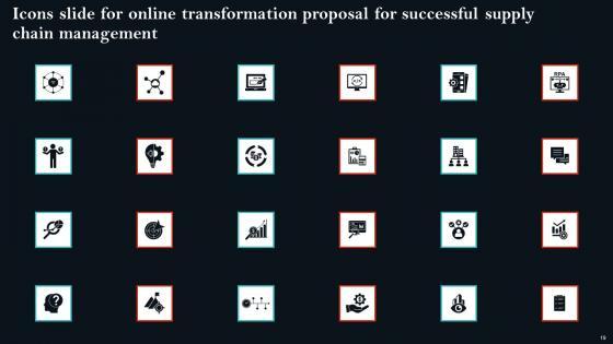 Presenting our innovatively structured Icons Slide For Online Transformation Proposal For Successful Supply Chain Management Themes Pdf set of slides. The slides contain a hundred percent editable icons. You can replace these icons without any inconvenience. Therefore, pick this set of slides and create a striking presentation. Our Icons Slide For Online Transformation Proposal For Successful Supply Chain Management Themes Pdf are topically designed to provide an attractive backdrop to any subject. Use them to look like a presentation pro.