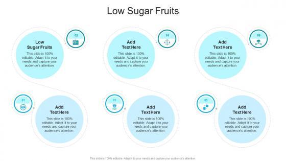 Presenting our innovatively designed set of slides titled Low Sugar Fruits In Powerpoint And Google Slides Cpb. This completely editable PowerPoint graphic exhibits Low Sugar Fruits that will help you convey the message impactfully. It can be accessed with Google Slides and is available in both standard screen and widescreen aspect ratios. Apart from this, you can download this well structured PowerPoint template design in different formats like PDF, JPG, and PNG. So, click the download button now to gain full access to this PPT design. Our Low Sugar Fruits In Powerpoint And Google Slides Cpb are topically designed to provide an attractive backdrop to any subject. Use them to look like a presentation pro.