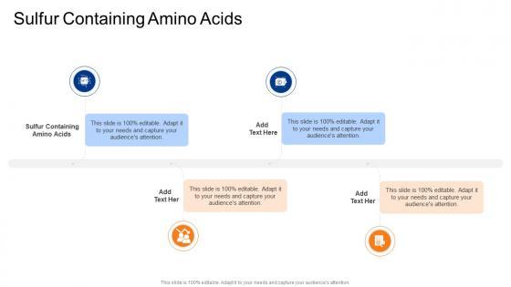 Presenting our innovatively designed set of slides titled Sulfur Containing Amino Acids In Powerpoint And Google Slides Cpb. This completely editable PowerPoint graphic exhibits Sulfur Containing Amino Acids that will help you convey the message impactfully. It can be accessed with Google Slides and is available in both standard screen and widescreen aspect ratios. Apart from this, you can download this well structured PowerPoint template design in different formats like PDF, JPG, and PNG. So, click the download button now to gain full access to this PPT design. Our Sulfur Containing Amino Acids In Powerpoint And Google Slides Cpb are topically designed to provide an attractive backdrop to any subject. Use them to look like a presentation pro.