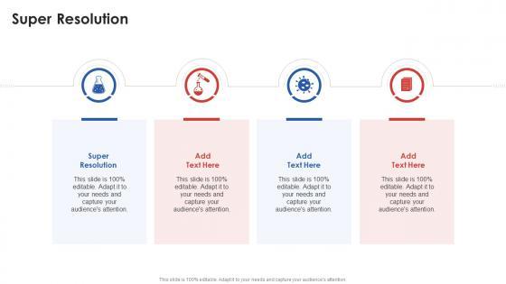 Introducing our well designed Super Resolution In Powerpoint And Google Slides Cpb. This PowerPoint design presents information on topics like Super Resolution. As it is predesigned it helps boost your confidence level. It also makes you a better presenter because of its high quality content and graphics. This PPT layout can be downloaded and used in different formats like PDF, PNG, and JPG. Not only this, it is available in both Standard Screen and Widescreen aspect ratios for your convenience. Therefore, click on the download button now to persuade and impress your audience. Our Super Resolution In Powerpoint And Google Slides Cpb are topically designed to provide an attractive backdrop to any subject. Use them to look like a presentation pro.