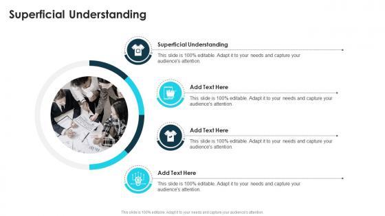 Presenting our innovatively designed set of slides titled Superficial Understanding In Powerpoint And Google Slides Cpb. This completely editable PowerPoint graphic exhibits Superficial Understanding that will help you convey the message impactfully. It can be accessed with Google Slides and is available in both standard screen and widescreen aspect ratios. Apart from this, you can download this well structured PowerPoint template design in different formats like PDF, JPG, and PNG. So, click the download button now to gain full access to this PPT design. Our Superficial Understanding In Powerpoint And Google Slides Cpb are topically designed to provide an attractive backdrop to any subject. Use them to look like a presentation pro.