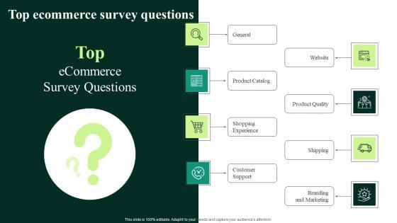Here you can discover an assortment of the finest PowerPoint and Google Slides templates. With these templates, you can create presentations for a variety of purposes while simultaneously providing your audience with an eye catching visual experience. Download Optimizing Multichannel Strategy To Improve User Experience Top Ecommerce Survey Questions Slides PDF to deliver an impeccable presentation. These templates will make your job of preparing presentations much quicker, yet still, maintain a high level of quality. Slidegeeks has experienced researchers who prepare these templates and write high quality content for you. Later on, you can personalize the content by editing the Optimizing Multichannel Strategy To Improve User Experience Top Ecommerce Survey Questions Slides PDF.