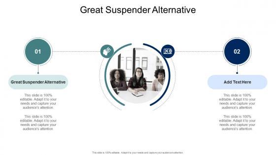 Introducing our well-designed Great Suspender Alternative In Powerpoint And Google Slides Cpb. This PowerPoint design presents information on topics like Great Suspender Alternative. As it is predesigned it helps boost your confidence level. It also makes you a better presenter because of its high-quality content and graphics. This PPT layout can be downloaded and used in different formats like PDF, PNG, and JPG. Not only this, it is available in both Standard Screen and Widescreen aspect ratios for your convenience. Therefore, click on the download button now to persuade and impress your audience. Our Great Suspender Alternative In Powerpoint And Google Slides Cpb are topically designed to provide an attractive backdrop to any subject. Use them to look like a presentation pro.