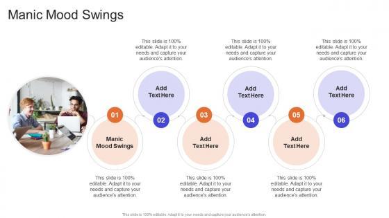 Introducing our well designed Manic Mood Swings In Powerpoint And Google Slides Cpb. This PowerPoint design presents information on topics like Manic Mood Swings. As it is predesigned it helps boost your confidence level. It also makes you a better presenter because of its high quality content and graphics. This PPT layout can be downloaded and used in different formats like PDF, PNG, and JPG. Not only this, it is available in both Standard Screen and Widescreen aspect ratios for your convenience. Therefore, click on the download button now to persuade and impress your audience. Our Manic Mood Swings In Powerpoint And Google Slides Cpb are topically designed to provide an attractive backdrop to any subject. Use them to look like a presentation pro.