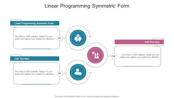 Presenting our innovatively designed set of slides titled Linear Programming Symmetric Form In Powerpoint And Google Slides Cpb. This completely editable PowerPoint graphic exhibits Linear Programming Symmetric Form that will help you convey the message impactfully. It can be accessed with Google Slides and is available in both standard screen and widescreen aspect ratios. Apart from this, you can download this well structured PowerPoint template design in different formats like PDF, JPG, and PNG. So, click the download button now to gain full access to this PPT design. Our Linear Programming Symmetric Form In Powerpoint And Google Slides Cpb are topically designed to provide an attractive backdrop to any subject. Use them to look like a presentation pro.
