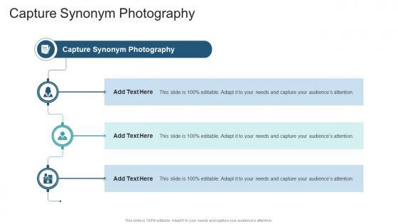 Introducing our well designed Capture Synonym Photography In Powerpoint And Google Slides Cpb. This PowerPoint design presents information on topics like Capture Synonym Photography. As it is predesigned it helps boost your confidence level. It also makes you a better presenter because of its high quality content and graphics. This PPT layout can be downloaded and used in different formats like PDF, PNG, and JPG. Not only this, it is available in both Standard Screen and Widescreen aspect ratios for your convenience. Therefore, click on the download button now to persuade and impress your audience. Our Capture Synonym Photography In Powerpoint And Google Slides Cpb are topically designed to provide an attractive backdrop to any subject. Use them to look like a presentation pro.