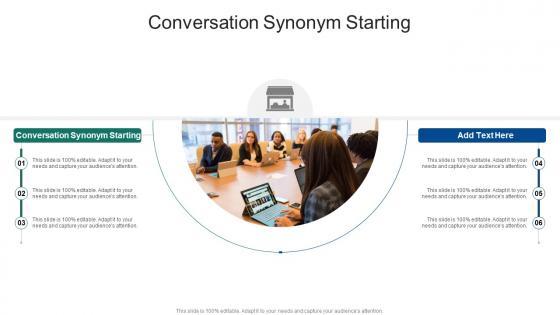 Introducing our well designed Conversation Synonym Starting In Powerpoint And Google Slides Cpb. This PowerPoint design presents information on topics like Conversation Synonym Starting. As it is predesigned it helps boost your confidence level. It also makes you a better presenter because of its high quality content and graphics. This PPT layout can be downloaded and used in different formats like PDF, PNG, and JPG. Not only this, it is available in both Standard Screen and Widescreen aspect ratios for your convenience. Therefore, click on the download button now to persuade and impress your audience. Our Conversation Synonym Starting In Powerpoint And Google Slides Cpb are topically designed to provide an attractive backdrop to any subject. Use them to look like a presentation pro.