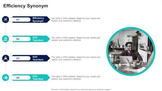 Introducing our well designed Efficiency Synonym In Powerpoint And Google Slides Cpb. This PowerPoint design presents information on topics like Efficiency Synonym. As it is predesigned it helps boost your confidence level. It also makes you a better presenter because of its high quality content and graphics. This PPT layout can be downloaded and used in different formats like PDF, PNG, and JPG. Not only this, it is available in both Standard Screen and Widescreen aspect ratios for your convenience. Therefore, click on the download button now to persuade and impress your audience. Our Efficiency Synonym In Powerpoint And Google Slides Cpb are topically designed to provide an attractive backdrop to any subject. Use them to look like a presentation pro.