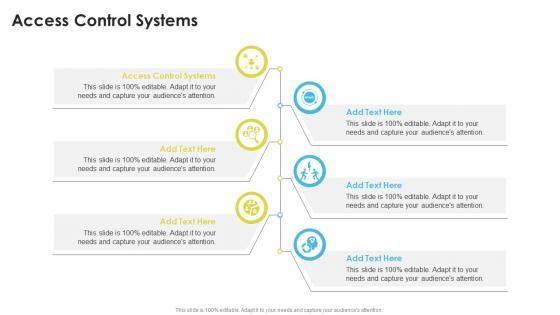 Introducing our well designed Access Control Systems In Powerpoint And Google Slides Cpb. This PowerPoint design presents information on topics like Access Control Systems. As it is predesigned it helps boost your confidence level. It also makes you a better presenter because of its high quality content and graphics. This PPT layout can be downloaded and used in different formats like PDF, PNG, and JPG. Not only this, it is available in both Standard Screen and Widescreen aspect ratios for your convenience. Therefore, click on the download button now to persuade and impress your audience. Our Access Control Systems In Powerpoint And Google Slides Cpb are topically designed to provide an attractive backdrop to any subject. Use them to look like a presentation pro.